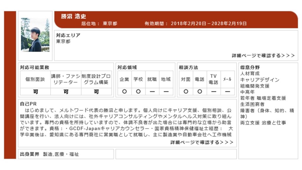 私たちの専門性公的機関が運営するキャリコンサーチに登録されたカウンセラーです